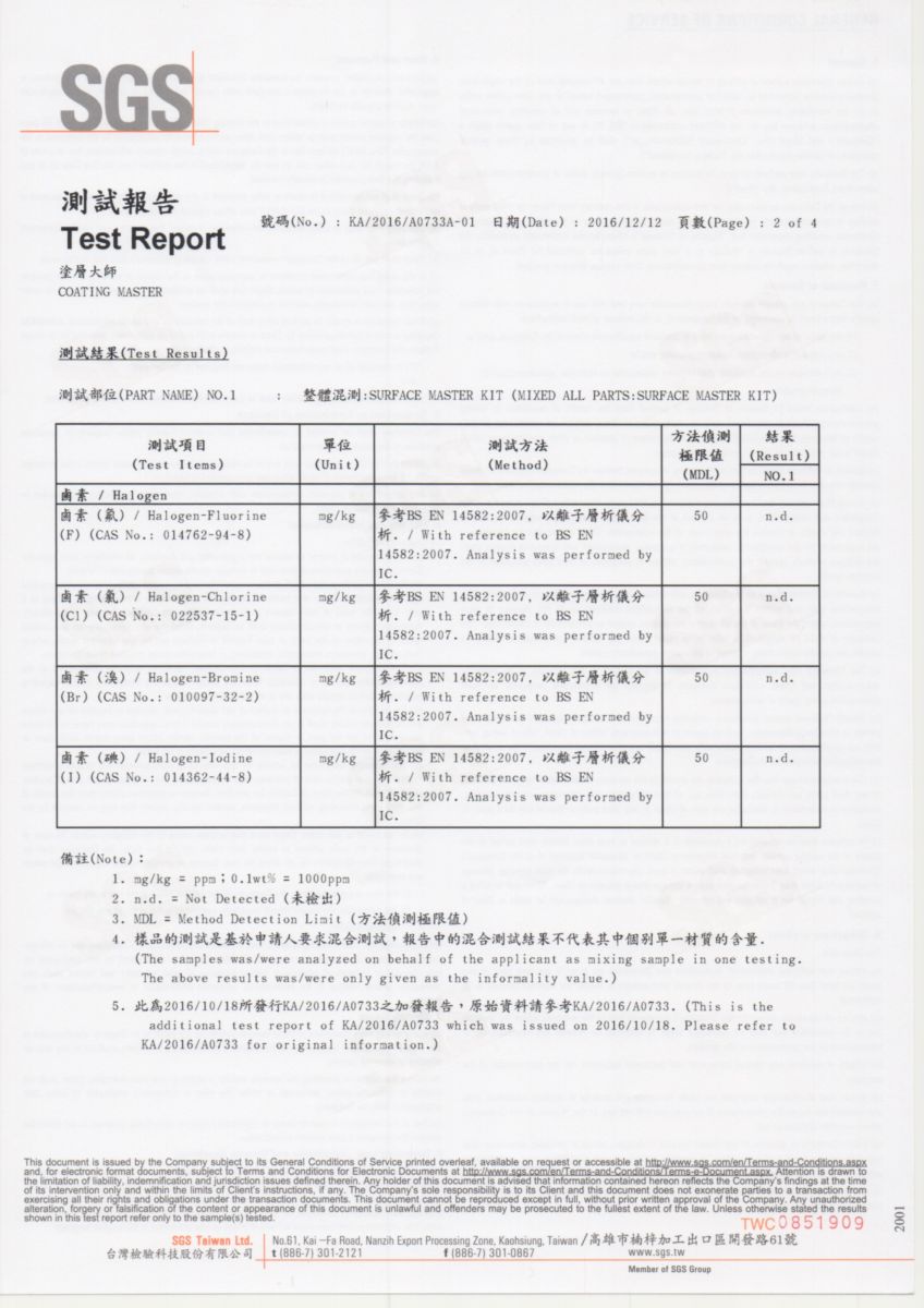 塗層大師 SGS 報告書
